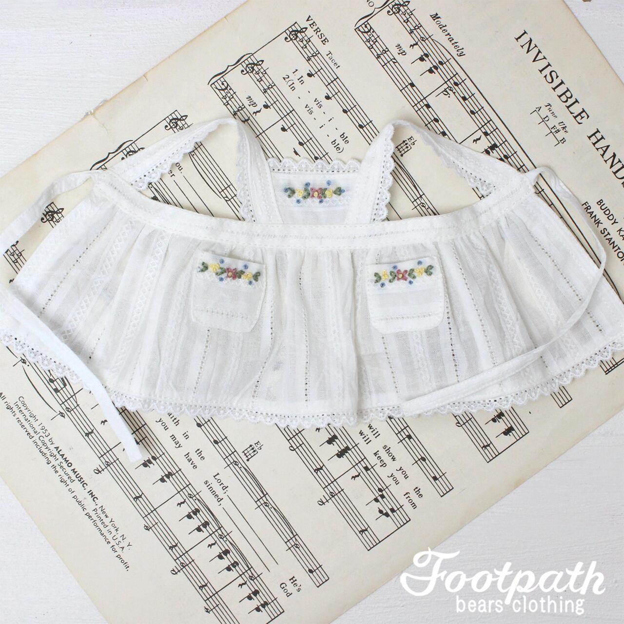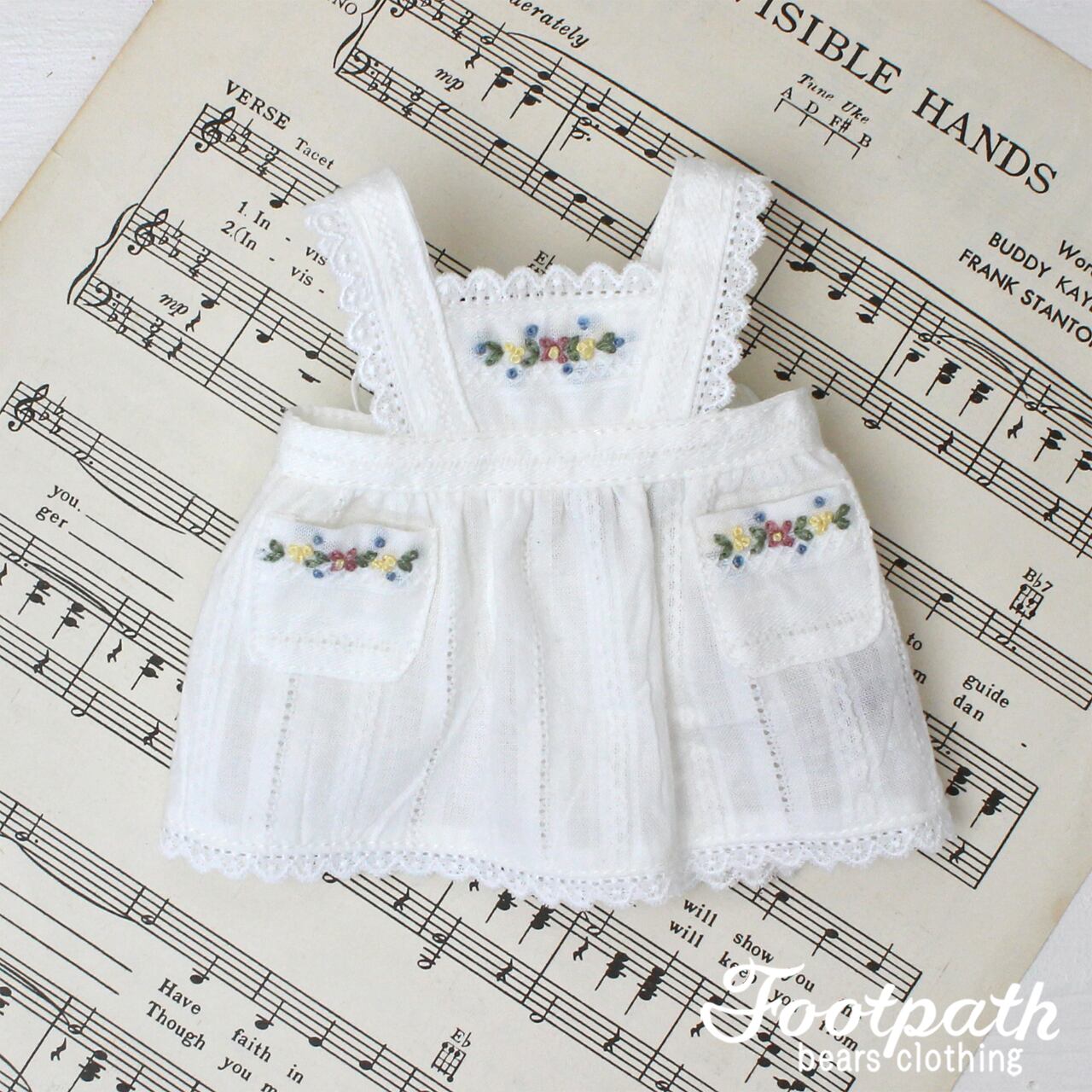 可愛い小花の刺繍を施したエプロンドレス。