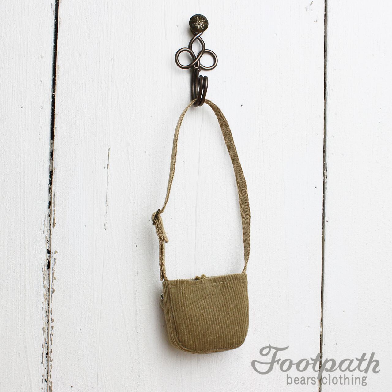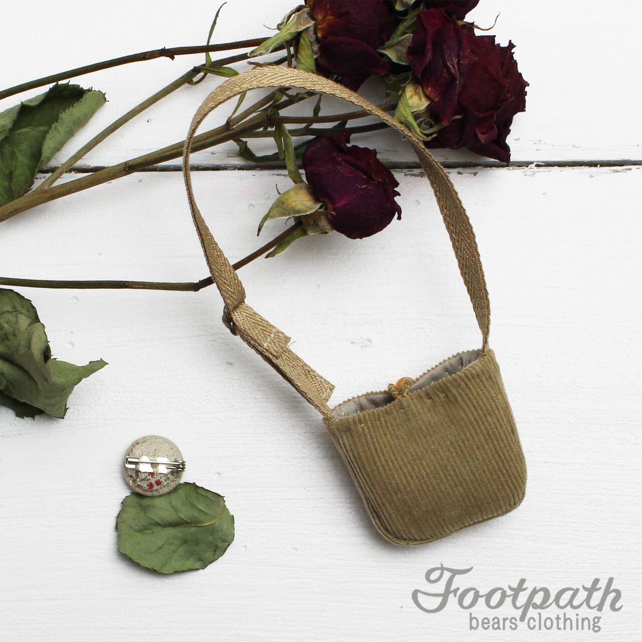 ベージュのコーデュロイと、小さいブローチに