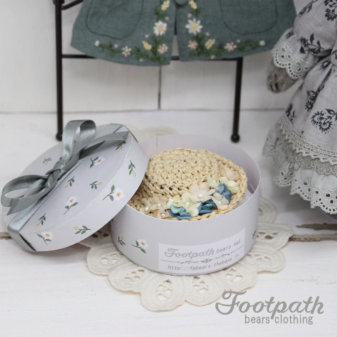 刺繍のジャケットと、染め花を付けたハット(ケース付き)と、