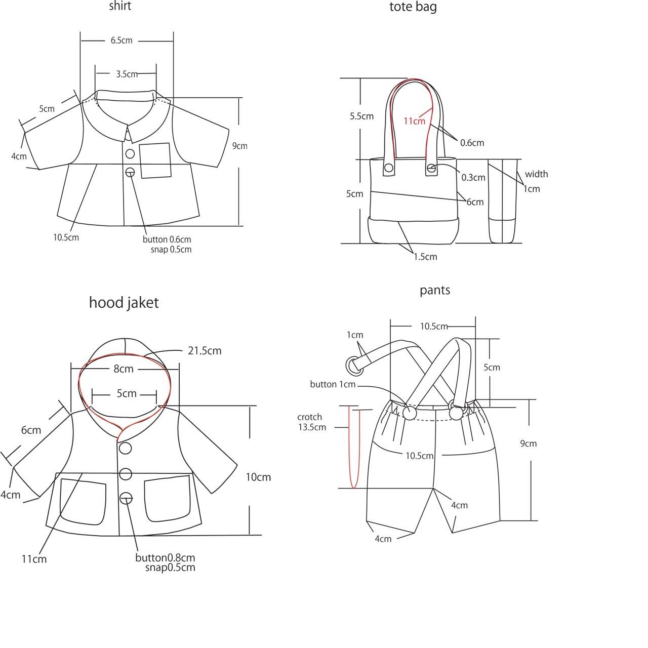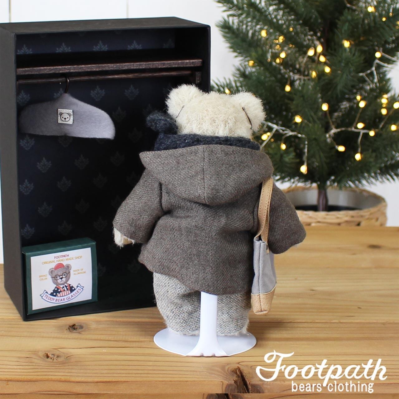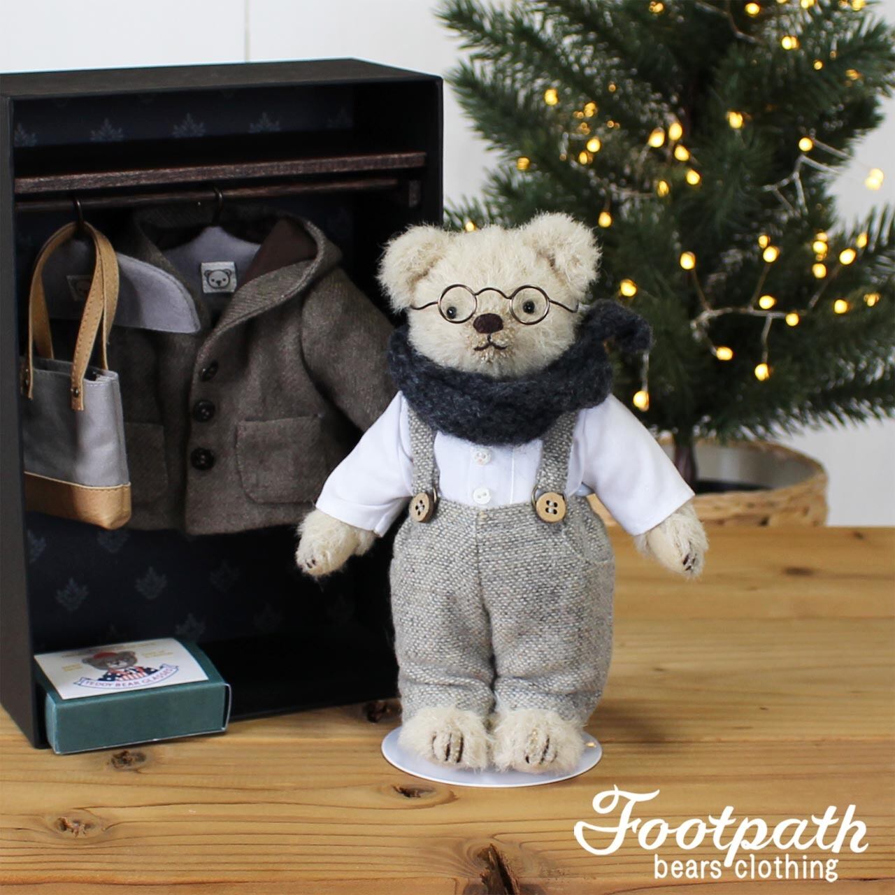 テディベア、シャツ、パンツ、ジャケット、バッグ、手編みマフラー、メガネ、スタンド、